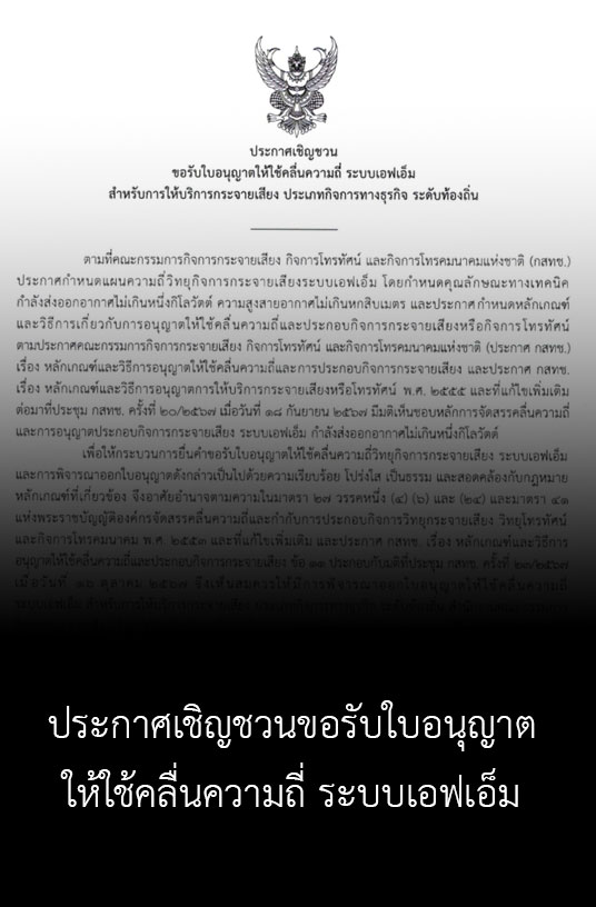 เมื่อวันที่ 21 ตุลาคม 2568 มีมติเห็นชอบกำหนดวันประมูลคลื่นความถี่วิทยุ FM สำหรับการให้บริการกระจายเสียงประเภทธุรกิจ ระดับท้องถิ่น ระหว่างวันที่ 12-14 พฤศจิกายน 2568 เพื่อเปลี่ยนผ่านเข้าสู่ระบบใบอนุญาตให้สามารถออกอากาศต่อได้หลังวันที่ 31 ธันวาคม 2568 นี้ พลอากาศโท ธนพันธุ์ หร่ายเจริญ…